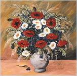 Mam też piękny ogród, który jest drugim moim hobby i wspaniałą inspiracją dla mej twórczości. Piękno przyrody można ujrzeć w każdej roślinie, a rośliny niemal same układają mi się w bukiety. Wystarczy tylko dobrać je odpowiednio i przelać na płótno. Pierwsze obrazy namalowane akrylami powstały w 1989 roku i od tej pory namalowałam ich już około 400.