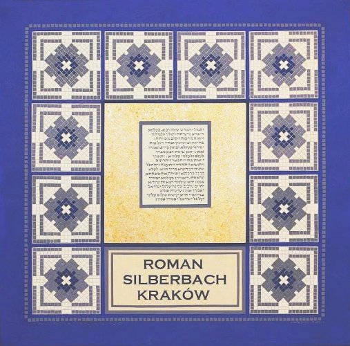 Ta osobliwa „zażyłość” nie skłoniłaby mnie do tego, by dedykować mu wystawę, gdyby nie kilka rozmów, dziwnych zdarzeń, jakie miały miejsce zimą tego roku. W rozmowach tych nagle i nieoczekiwanie pojawiało się jego imię. Postanowiłam więc poświęcić mu wystawę. Życzliwą radą, informacją i wsparciem darzył mnie Pan Jakub Danziger, który też udostępnił na wystawę fotografie mozaikowych posadzek. Szukając w internecie informacji spostrzegłam, że dwie osoby żyjące w tym czasie nazywały się tak samo: Abraham Isser - Roman i jego wnuk, Roman, syn Malwiny Apte i Emila, producenta płytek ceramicznych, urodzony w maju 1910 r. Inżynier i spadkobierca, jak można przypuszczać, rodzinnej firmy. Zamordowany, co poświadcza dokument z Yad Vashem, w r. 1945 w Budapeszcie. Zanim poślubił Helenę Salomeę Wajsberg, zanim 1 września 1939 urodził mu się starszy syn, miał Romek Silberbach, trzynastoletni chłopiec, uroczystą bar micwę, zapewne w Tempel, synagodze swych dziadków. Wyobrażam go sobie stojącego przed witrażem Jetti i Romana. To dla niego właśnie jest ta kompozycja, którą wykonywałam przez kilka miesięcy: Kadisz. W obramowaniu tekstu umieściłam papierową mozaikę, kopię jednej z tych, jakie wykonano w zakładzie jego dziadka.